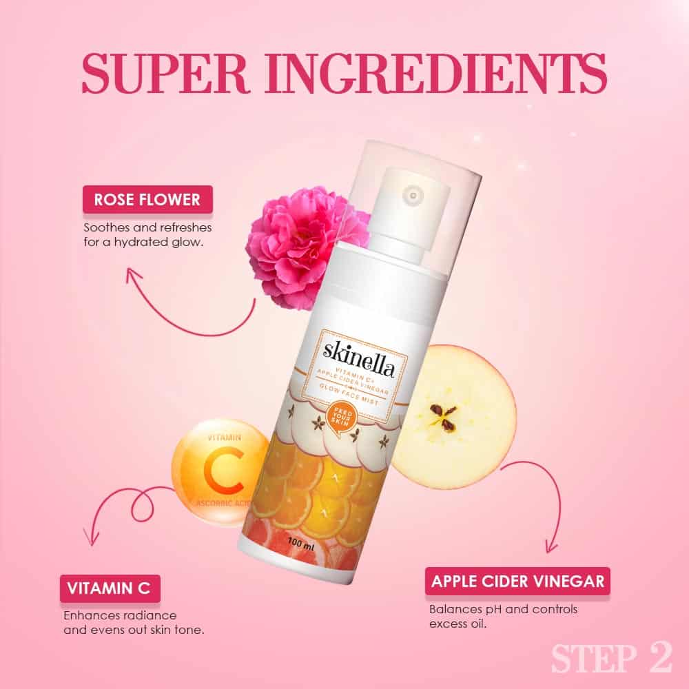 Vitamin C & Apple Cider Vinegar Face Mist – Instantly refreshes, controls excess oil, and protects skin with antimicrobial properties.