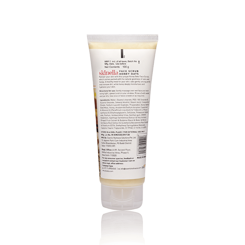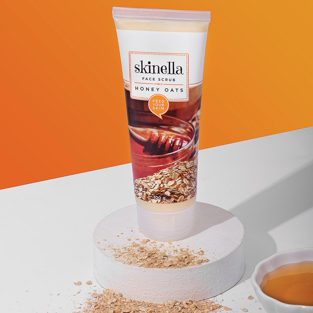 Two superfood ingredients long known for their healing properties in one powerful face scrub! Packed with the natural goodness of honey and oats, Skinella’s Honey Oats Face Scrub exfoliates the skin, clears buildup of dead skin cells, and leaves your face feeling soft, clean, and hydrated. Oats soak up the excess oil on your skin, boost collagen production, improve complexion, and reduce skin inflammation. Honey works to deeply moisturise the skin, cleanse the pores from within, lighten scars, and heal sunburns. Honey also has powerful antibacterial properties, benefiting those with skin prone to breaking out. Together, these power-packed ingredients join forces to effectively exfoliate your skin and keep you glowing, all week long. It’s time to get yourself a glow up— what are you waiting for?